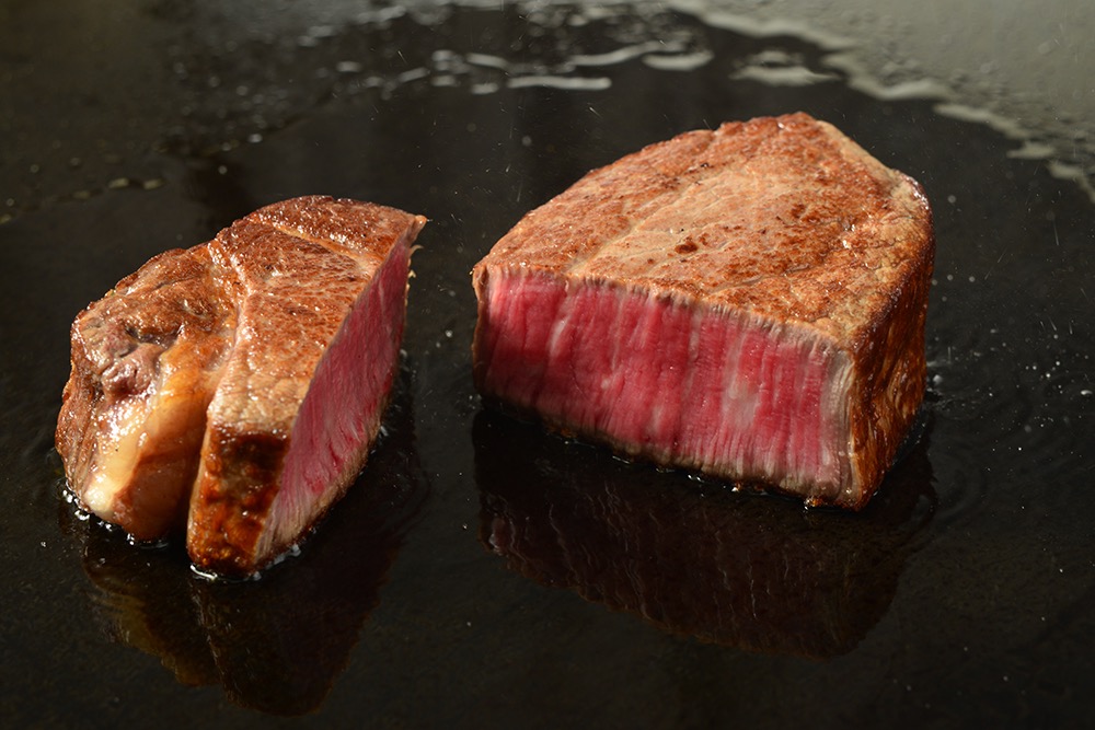 その場で焼きたてを食べられます。ミディアム・レアの絶妙の焼き加減で、米沢牛の旨味が引き立ちます。
