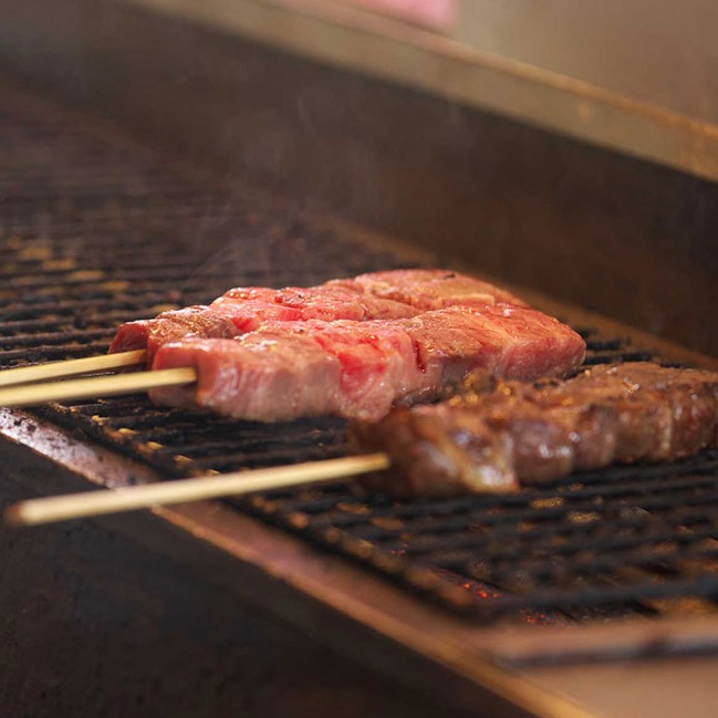 その場で焼きたてを食べられます。ミディアム・レアの絶妙の焼き加減で、米沢牛の旨味が引き立ちます。