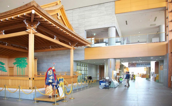 舞台芸術を鑑賞する文化ホールとして博物館と併設され、能や狂言が上演される際には、入口に展示してある能舞台をホール内に移動収容させます。
