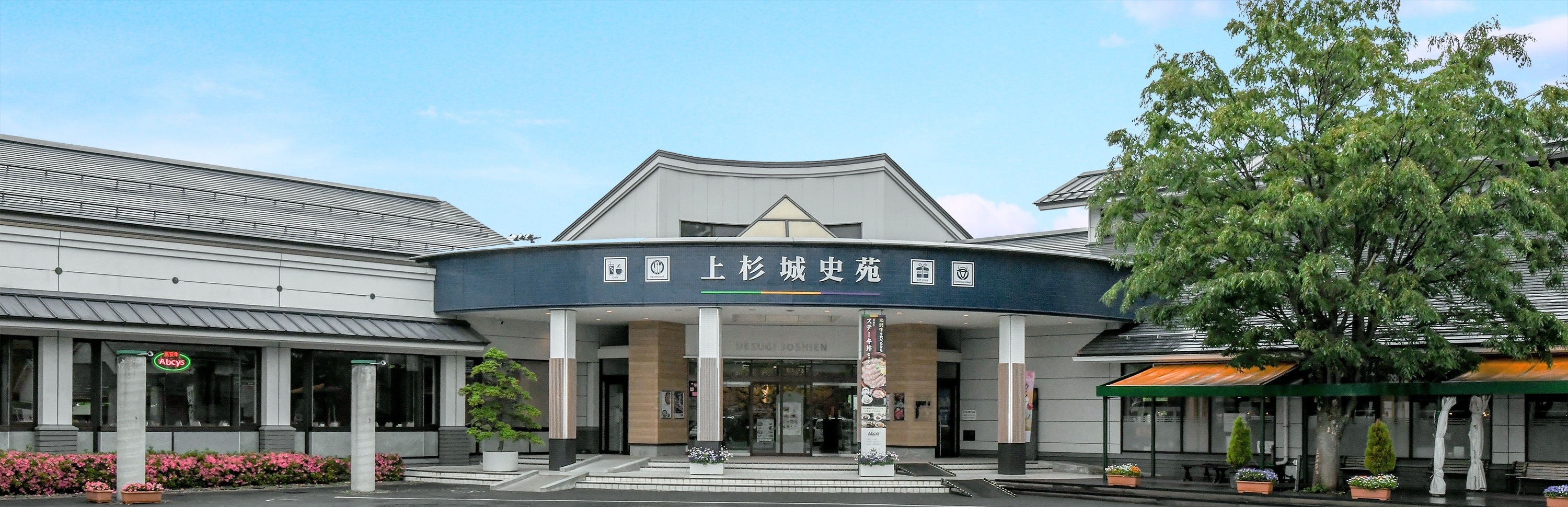 JR米沢駅西口を出て、左側バスターミナルより「循環右回り」青い色のバス「ヨネザアド号」に乗り、上杉神社前で下車。(約11分)